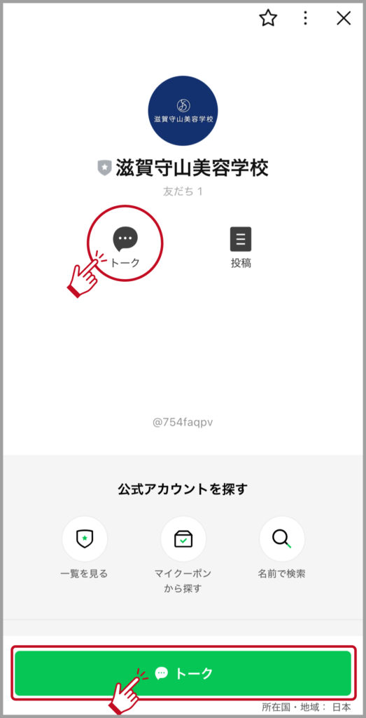 当店のLINEアカウントを「友達追加」したのち、当校宛てにメッセージをお送りください。ご連絡頂ければ、当校から開催日程を送らさせていただきます。24時間以内にご返信、スムーズにご案内いたします。
